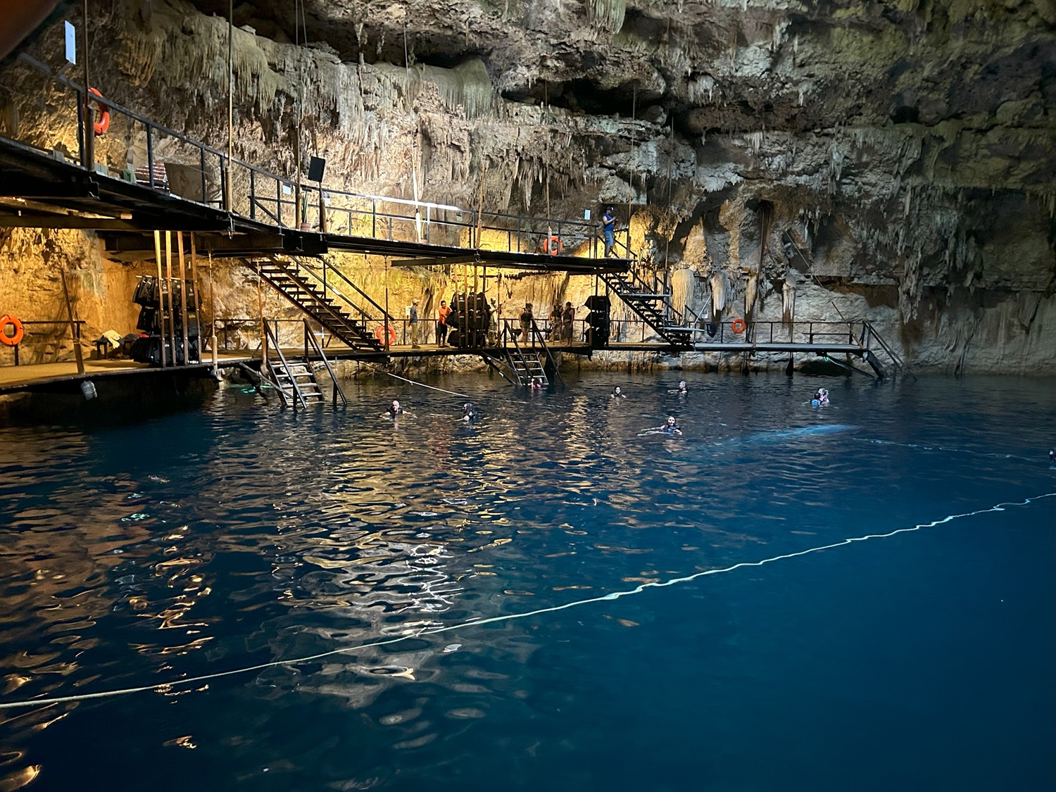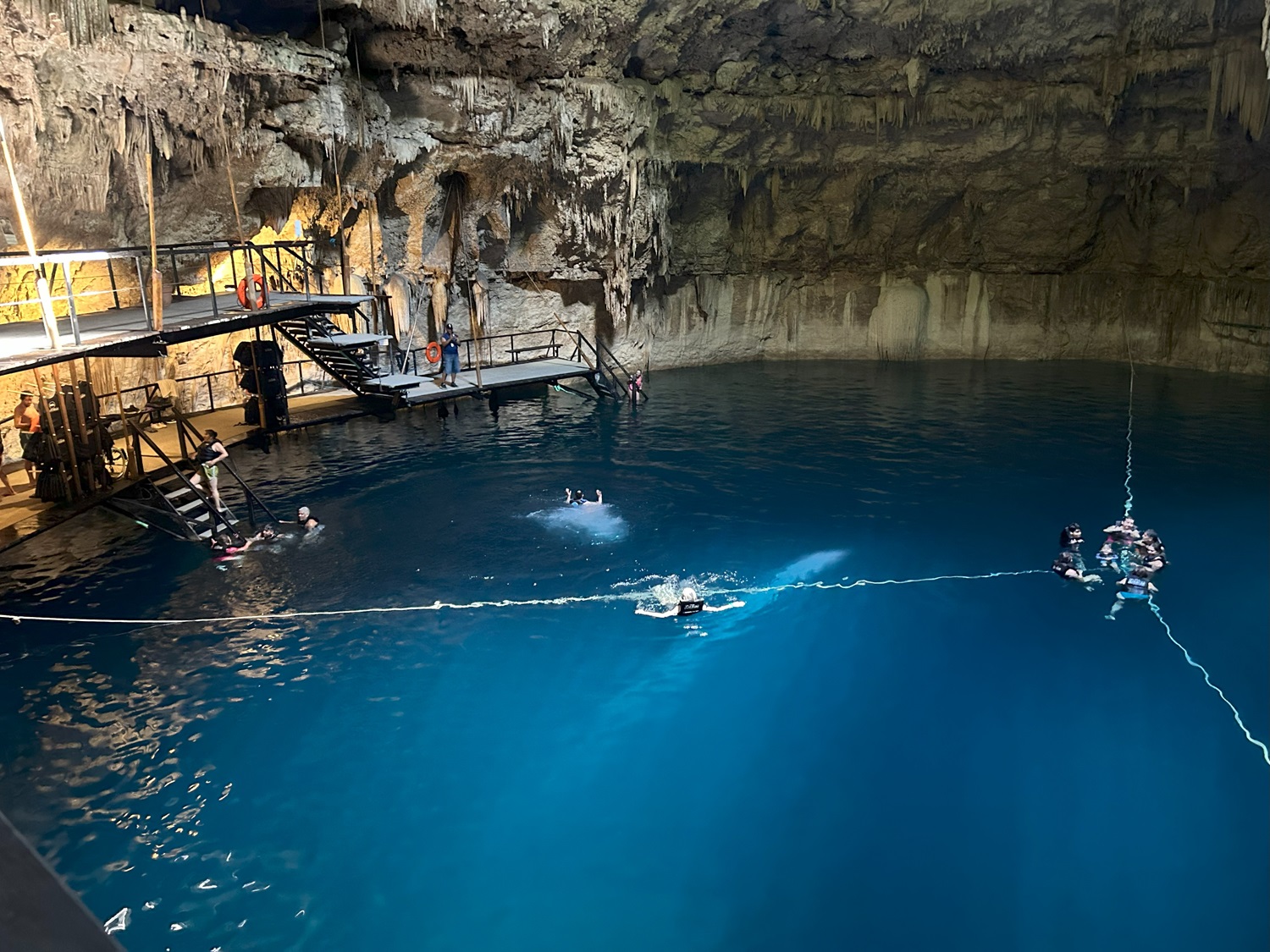 Discover one of the most impressive underground cenotes in Yucatan. Swim in the refreshing waters of Cenote Chukum and gaze at hundreds of stalactites.